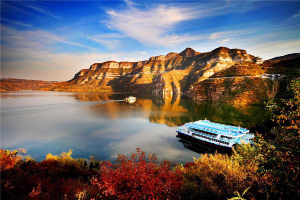 黃河三峽景區內群峰競秀、山水交融,既有南國山水的柔媚與婉約,又不失北方山水的雄健與陽剛,集南北山水之大成。這里不僅高峽平湖、港灣交錯、奇峰林立、洞龕眾多,而且還有“鯀山禹斧” 的黃河文化、“京娘化鳳” 的美麗傳說、“洞天福地”的祈福文化、“犀牛望月”的風水寶地等一系列君王勝跡,被譽為“黃河三峽,皇家山水”,堪稱“中原第一高峽平湖,華夏罕見大河盆景”。黃河三峽峰巒雄崎,危崖聳立,似鬼斧神工;林海浩瀚,煙籠霧鎖,如飄渺仙境;高峽平湖,山水一色,有漓江神韻。蕩舟碧波上,仿佛進入了連綿不斷的畫卷,真是“舟行碧波上,人在畫中游。”