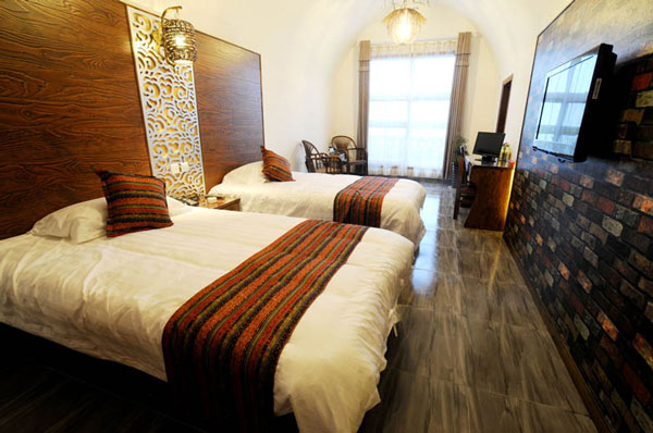 河之南文化酒店地處三門峽天鵝湖濕地公園南段,占地30余畝,依山傍水,直面黃河, 天然氧吧,空氣清新。朝看天鵝起舞,幕眺黃河日落,日聞荷風鳥鳴,夜觀繁星滿天。以千百年來黃土高坡穴居窯洞為主題,修建80余孔窯洞。酒店設計融入金三 角大河文化精典,古樸雅致,將人文與自然完美融合,土窯中冬暖夏涼,溫度宜人,無任何環(huán)境污染,被譽為“會呼吸的房子”,是集住宿、餐飲、茶道、娛樂、會 展為一體的特色休閑窯居酒店。