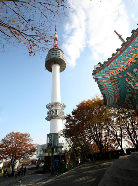前往【南山公園】(車程約10分鐘,共停約40分鐘)位于漢城市中心的南山上,樹木繁茂,春天賞櫻花,秋天賞楓,公園內有八角亭和朝鮮時代的烽火臺。