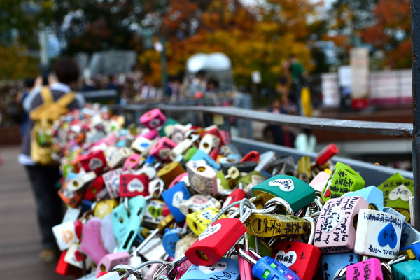 【N首爾塔】(不登塔)途經【愛情鎖墻】,在此掛上寫有你們甜蜜話語的字將鎖掛上,扔掉鑰匙,鎖住永恒愛情吧。