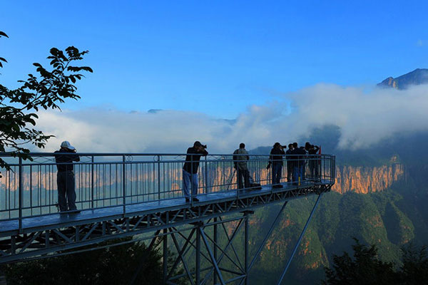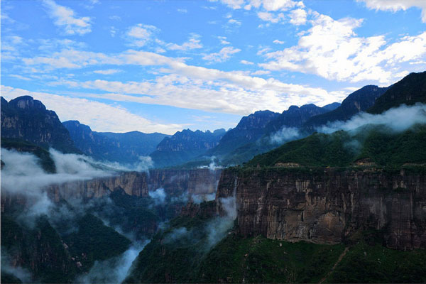 10:30 到達新鄉南太行地質公園精品園區——天界山風景區;走絕壁天路—紅色精神走廊(S型青峰關隧道)—清峰關—回龍精神展覽—碑廊—云峰畫廊360°品回龍精神,嘆人間奇跡,覽紅巖絕壁大峽谷