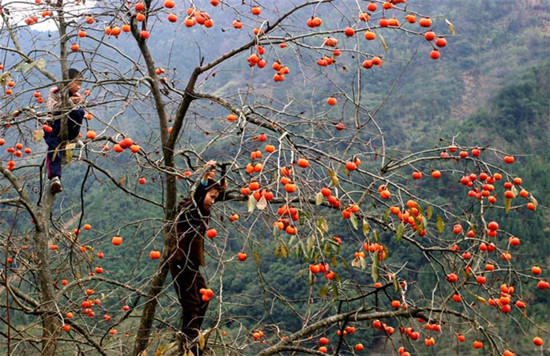 這里是柿子的天堂,房前屋后,嶺上溝邊,到處都是或粗壯或挺秀的柿子樹(shù),紅彤彤的柿子長(zhǎng)滿了枝椏,恨不能一下子壓彎了柿樹(shù)的老腰。楊樹(shù)溝的柿子隨摘隨吃,軟甜可口,一口下去,飽滿的汁液就會(huì)讓人口齒留香!
