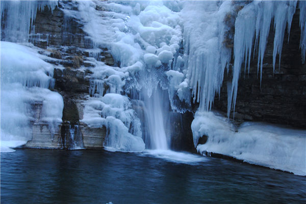 山西通天峽景區,山高海拔1600多米,是太行山中最險、最長、落差最大的一條峽谷。通天峽的景色,春夏秋冬四時不同,冬季的通天峽,山谷間、峭壁上冰掛倒垂,溪流中,飛瀑上凝凍飛霜,其形綽約多姿,其色碧如潔玉。通天峽冰掛冰凍期長,并形態變化多樣,是太行冬季最難得的自然奇觀,被譽為“太行山冬季奇景”。通天峽的冰掛,奇美的如同精雕細琢的水晶宮,冰封著太行的千姿百態,似利劍,如簾幕,是太行山脈冬季最奇特的景觀之一。
