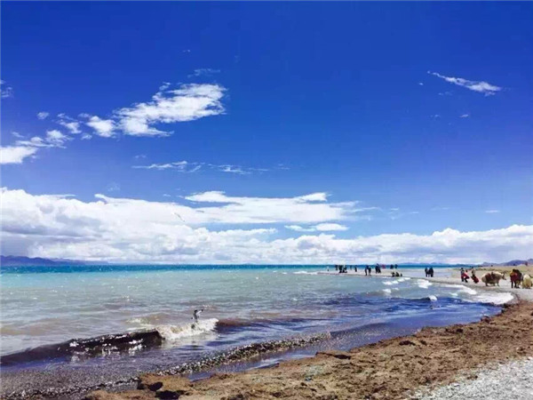 馳騁當(dāng)雄草原,翻越5100米的納根山,抵達世界最高的咸水湖納木措,環(huán)顧一望無際的藏北大草原,雪山連綿,藍天白云。納木措,藏語意為“天湖”,湖面海拔4718米,總面積為1900多平方公里,是我國的第二大咸水湖,最深處約33米。