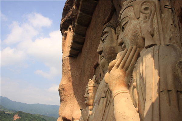 麥積山石窟被譽為“東方雕塑館”,為中國四大石窟之一,也是聞名世界的藝術(shù)寶庫。 麥積山是我國秦嶺山脈西端小隴山中的一座奇峰,海拔1742米,但山高離地面只有142米,山的形狀奇特,孤峰突起,猶如麥垛,因此人們稱之為麥積山,麥積山石窟的一個顯著特點是洞窟所處位置極其驚險,大都開鑿在懸崖峭壁 之上,洞窟之間全靠架設(shè)在崖面上的凌空棧道通達。游人攀登上這些 蜿蜒曲折的凌空棧道,不禁驚心動魄。古人曾稱贊這些工程:“峭壁之間,鐫石成佛,萬龕千窟。碎自人力,疑是神功。”
