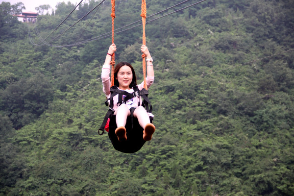 13:00 游覽豫西第一飛瀑——大淙潭瀑布群,龍泉溝原始林區(qū),白龍?zhí)叮徘伲B峽谷等瀑布潭池景觀,可參加高空滑索(空中飛人)等大型健身娛樂項目(約4小時)