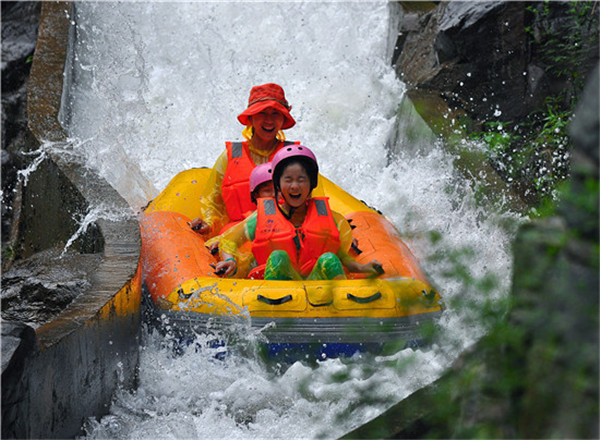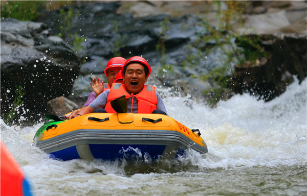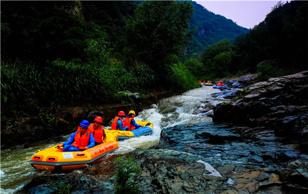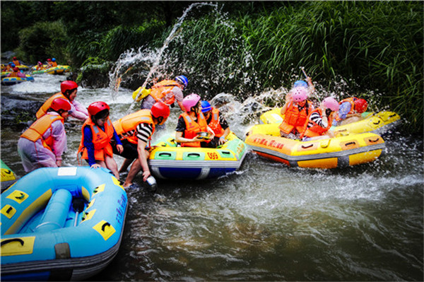 13:00 午餐后和來自全國各地的數百對雙胞胎一同狂歡,體驗雙子競漂、萬人歡樂的燃燃激情(2.5—3小時),漂流完之后參觀豫西大峽谷神奇瀑布群,也可自行選擇乘坐漂流返程交通。