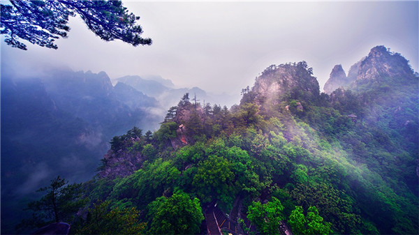 14:00 游覽老界嶺景區(qū),松濤云海(聽松濤觀界嶺云海)→迎客松(千年古松)→伏牛神龜→伏牛山神(八百里伏牛山的鎮(zhèn)山之神震撼心魄)→紅豆杉觀景處(賞植物中的熊貓、瀕臨滅絕珍惜植物)→生態(tài)棧道→水墨畫觀景臺(tái)(觀自然奇景大型潑墨畫)→日月臺(tái)→攬勝臺(tái)(體驗(yàn)長江黃河分水嶺的天然奇景)
