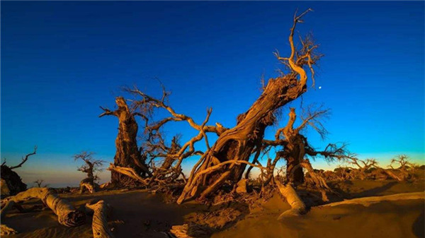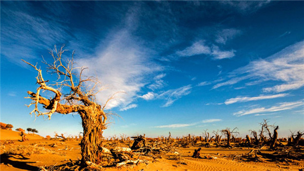 這里枯死的胡楊陳尸遍野,呈現(xiàn)出古老的原始風(fēng)貌