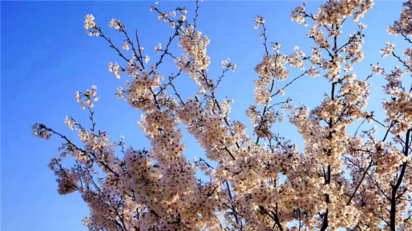 園里的櫻花,就像一位嬌羞的姑娘含苞待放,紅中透著粉,粉里帶著紫,每一朵都牽動(dòng)人心。