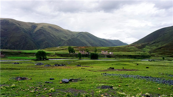 邦達(dá)海拔4300米,曾是著名的“茶馬古道”必經(jīng)之地。怒江支流玉曲蜿蜒流淌其中,兩岸廣闊的低濕灘地上生長(zhǎng)著茂密低矮的大蒿草、苔草之類的草甸植物,綠茵如氈,成群牛羊在那里游蕩覓食外,偶爾也會(huì)有一些藏原羚出沒(méi)于其間。
