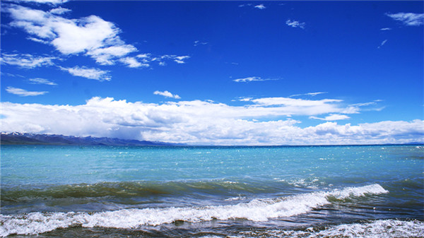 馳騁當(dāng)雄草原,翻越5100米的納根山抵達(dá)世界最高的咸水湖納木措,環(huán)顧一望無(wú)際的藏北大草原,雪山連綿,藍(lán)天白云。納木措,藏語(yǔ)意為“天湖”,湖面海拔4718米,總面積為1900多平方公里,是我國(guó)的第二大咸水湖。