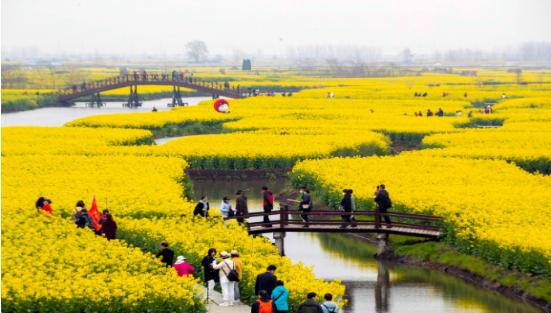 島上開滿了金燦燦的油菜花。