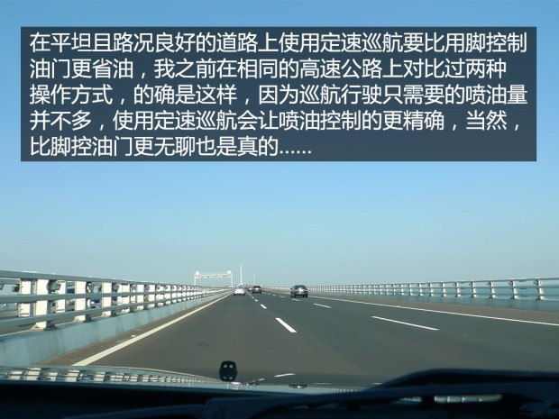 所以如果是在平路上行駛,比如路況良好的高速公路,你用巡航跑個幾十公里或幾百公里,這時候發(fā)動機噴油量是很均勻很精確的,無論是理論還是實際表現(xiàn)都是如此,我自己自駕游跑高速,也用過幾次定速巡航跑,相同的路段,的確是使用定速巡航要比自己用腳控制更省油一些,如果是人操作,深一腳淺一腳的,很難做到比電腦控制更精準,這一點無可非議。