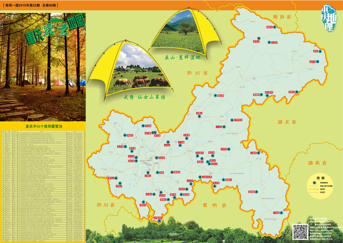 眼看著盛夏將近,要是能在一個依山傍水的地方扎個帳篷,與大自然融為一體,肯定是許多市民心心念念的美好愿望,主城周邊就有鐵山坪、蓮花湖、金刀峽等7個適合露營的地方,昨天,市規劃局、市地理信息中心制作了《重慶露營地圖》,推薦了全市50個露營地,并給出了自駕線路、提煉了各露營地的特點,以方便市民使用。