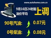 9月16日24時:90號汽油平均漲0.07元/升