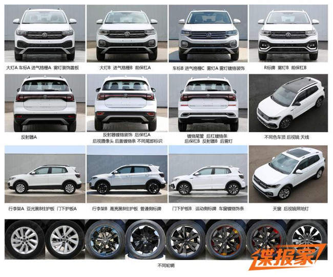 T-Cross是大眾面向全球推出的一款小型SUV,該車在中國分別由一汽-大眾和上汽大眾進行生產(chǎn),其中一汽-大眾的國產(chǎn)小型SUV外觀參考了歐版T-Cross的設(shè)計。根據(jù)此前申報信息來看,新車前臉采用倒梯形進氣格柵很好的與前大燈組相連,霧燈組采用矩形設(shè)計,這一點很好的區(qū)別于上汽大眾T-Cross途鎧,此外,輔以底盤銀色護板,使得新車看起來小巧玲瓏的同時,又不失SUV的跨界氣息。