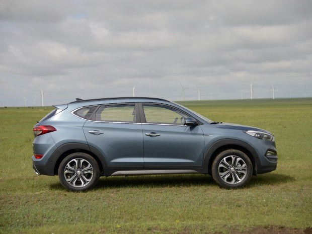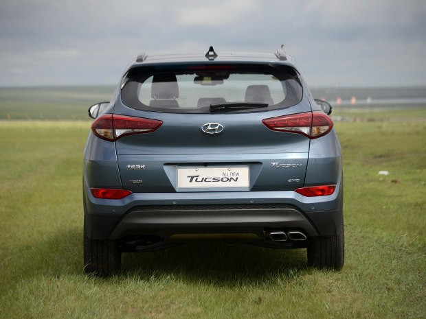作為現款ix35的換代車型,全新途勝前臉繼承了現代家族式的六邊形設計,其格柵整體尺寸進一步加大,內部三橫幅的造型給人感覺更加成熟。同時,新車前大燈采用了較為修長的設計,其日間行車燈及近光燈均融入了LED光源。此外,該車在前保險杠兩側裝配了一體式的前霧燈及日間行車燈。