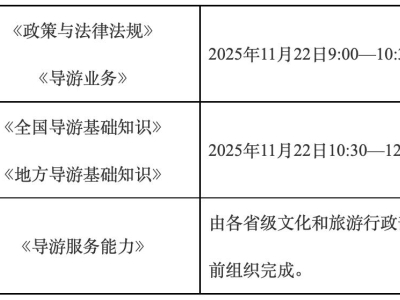據文旅部微信公眾號消息,文旅部辦公廳15日發布關于組織實施2025年全國導游資格考試的通知。具體如下: