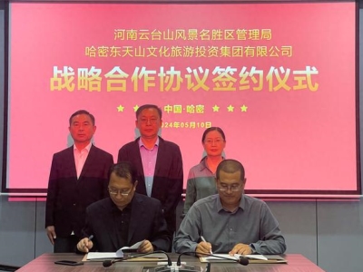 5月10日,云臺山景區受邀前往新疆哈密,與哈密東天山文化旅游投資集團有限公司簽訂戰略合作協議,并與新疆文化旅游投資集團有限公司就深化旅游市場營銷、推動文旅合作等方面進行座談交流,共同拓展兩地旅游合作發展新格局。