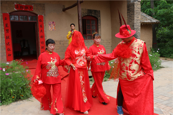 綠樹蔭濃,鮮花環抱的豫西百草園古村落中,每天上演傳統民俗婚禮,紅紅的花轎晃得起勁兒,紅紅的新娘妖嬈美麗,還有搞怪的猴戲表演。看罷新婚吃美食,美食村美味豆花、石磨豆腐、地鍋美食等,香氣四溢,惹人垂涎。