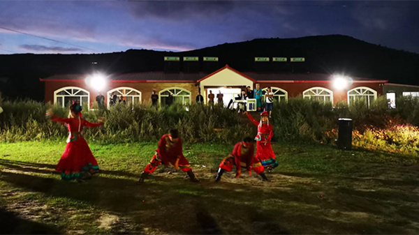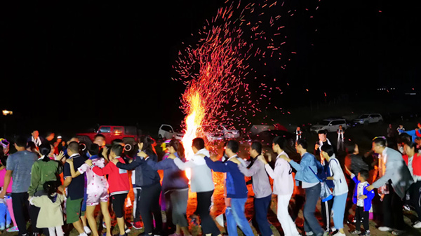 晚上美酒美食,大家吃起了烤全羊,歡聲陣陣。欣賞草原的特色表演之余,還有一場篝火晚會,大家手拉著手跳起了草原上的安代舞,在夜幕中歡歌載物,感覺好極了。