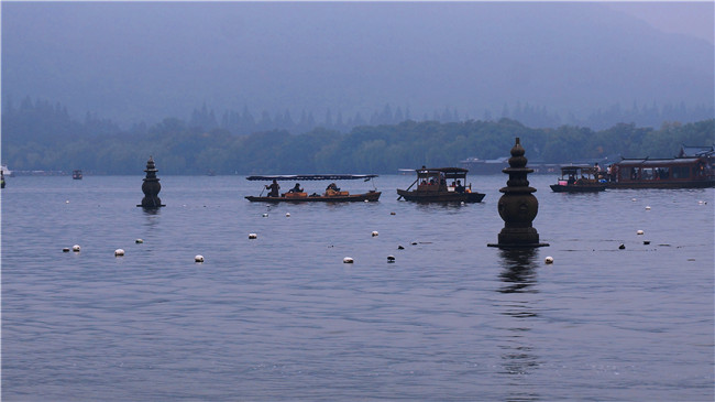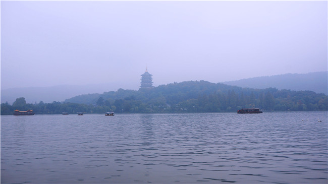 由于剛下過雨,西湖煙雨蒙蒙,真的是映照了蘇軾那句:水光瀲滟晴方好,山色空蒙雨亦奇。