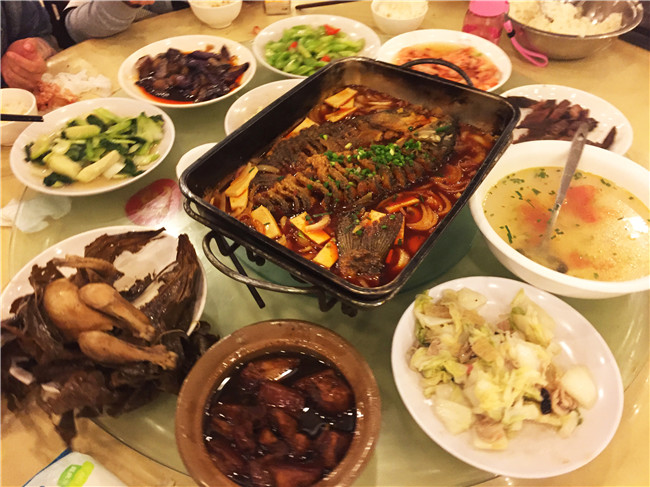 累了一整天,小伙伴們也有點期待晚上的重頭戲,千島湖的魚頭宴! 說起到千島湖吃魚那就得去淳安縣千島湖鎮排嶺南路2號的這家“千島湖魚味館”。這是千島湖吃魚的知名老店,大門口那塊“中國名餐館”的牌匾就足以說明這家餐館的地位。