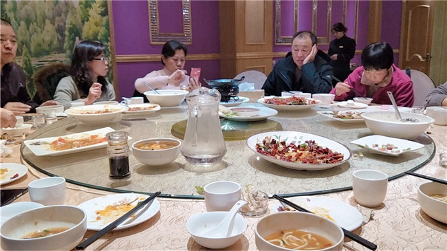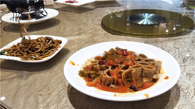 逛了一天,讓大家都有些期待晚間的特色團餐,飯菜上齊,大家便忍不住開動。烤姥姥,莜面,平遙牛肉,過油肉,饸饹面,帶有山西特色的面食讓大家過足了癮。