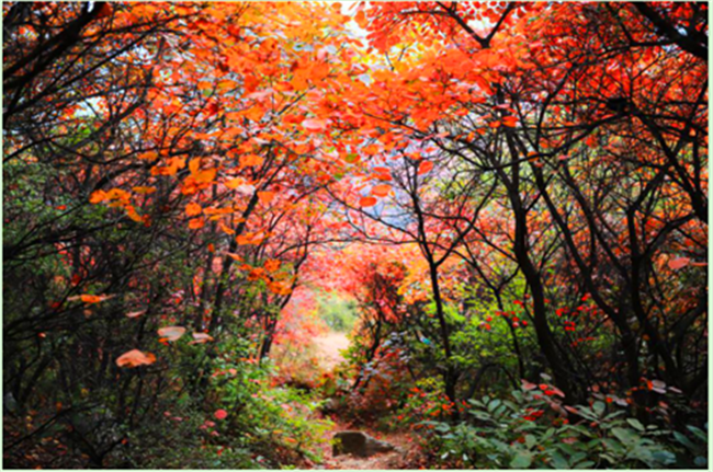 b、自少林景區游覽路線:少林景區游客中心——少林索道下站紅葉區入口——上紅葉區最佳觀賞地——原路返回下山。
