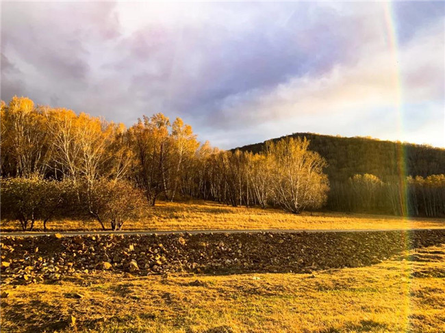五彩山是軍馬場觀賞次生林秋景的主要景點之一。山上層林盡染,豈止是五彩,雖然天氣陰沉,卻別有一番風味。再冷的天氣也阻擋不了想要欣賞美景的心情,每一個人都超級興奮,掙脫城市的束縛,來草原做一回浪子,盡情撒歡。