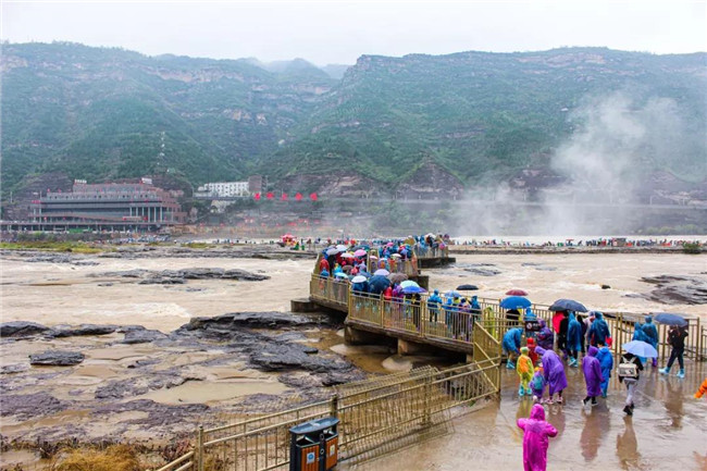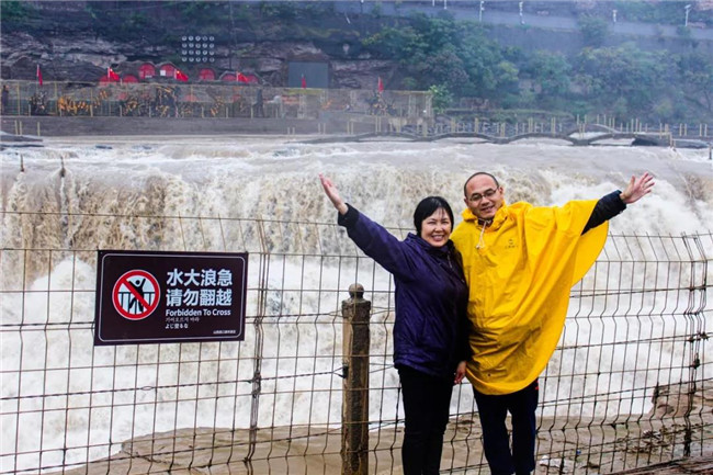千里黃河一壺收。雖然到達的當天天氣不是很好,但是絲毫不影響大家的興致,奔騰的瀑布讓大家興奮不已,紛紛拿出相機合影留念。