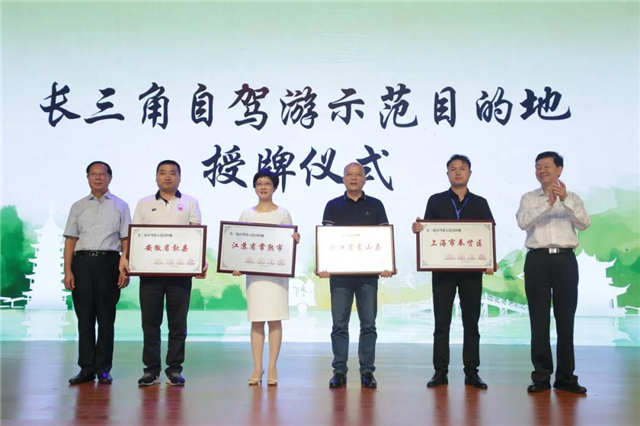 國(guó)家旅游局原黨組副書(shū)記、副局長(zhǎng)王志發(fā),江蘇省人民政府原副省長(zhǎng)、江蘇省旅游協(xié)會(huì)會(huì)長(zhǎng)張衛(wèi)國(guó),授牌江蘇省常熟市、上海市奉賢區(qū)、浙江省象山縣、安徽省歙縣《長(zhǎng)三角自駕游示范目的地》。