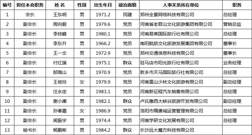 河南省自駕旅游協會第三屆換屆選舉擬任負責人公示