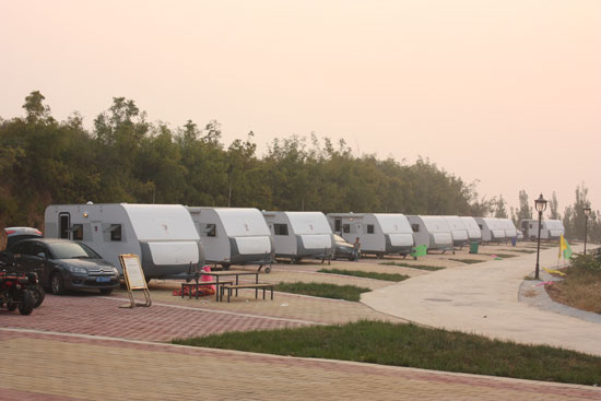 承大山莊露營基地排列整齊的豪華房車