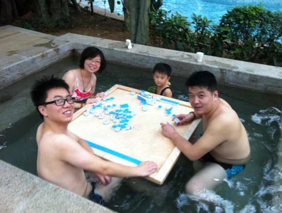 10月20號早飯后,在協會工作人員的帶領下,車友們來到堯山福泉。本來疲憊不堪,沒精打采的車友們看到大大小小的湯池,頓時來了興致,紛紛換上泳裝,跳入水中。有的游泳,有的打水仗,有的還在湯池里打麻將,更開心的是那些孩子們,在兒童游樂區里玩的不亦樂乎!