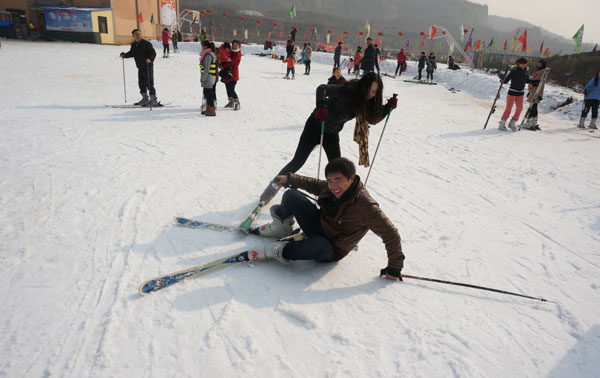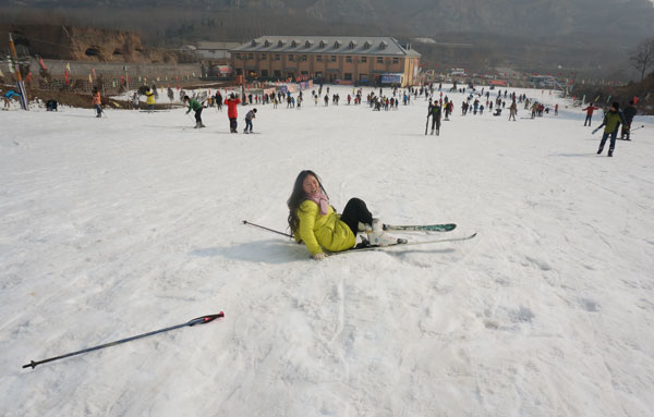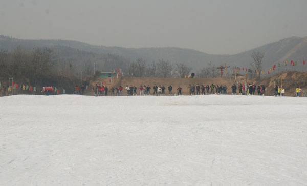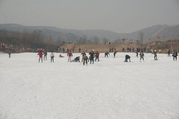 當陽峪滑雪場是焦作及豫北地區第一家、規模最大、設備設施齊全、雪場占地64畝,目前雪場內設有初、中級雪道各一條,中級雪道長度為600米,寬度為80米,坡度為14度;初級雪道為200米,寬度為80米,初級雪道為200米,寬度為80米,初級雪道為8度;另設單板道一條,坡度為10度。雪場擁有專業滑雪拖牽一條,魔毯一條,每小時可輸送人員量達1500人次,數臺國內外先進的大功率造雪機保證充足的雪量。