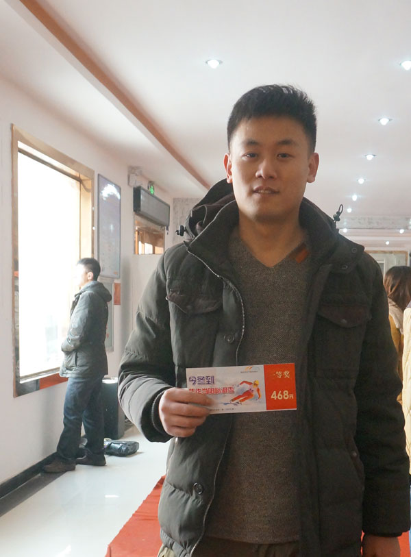 評定出滑雪比賽前三名,鴻德利汽車用品公司代表為獲獎車友頒發獎品。第一名獲得高檔手工皮革全包圍專車專用腳墊一套;第二名香百年香水一套;第三名高檔派比頸枕一套,獲獎車友們拿著獎券、獎品合影留念,樂的合不攏嘴。