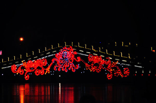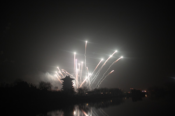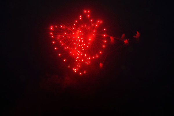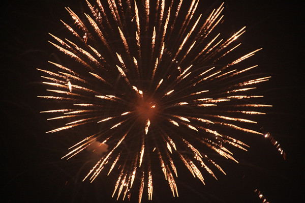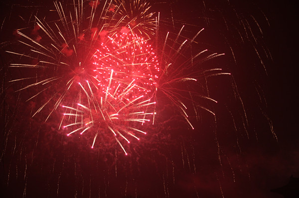 晚20時,“嘭”的一聲第一枚煙花在期待中升空,瞬間,萬朵禮花在夜空中綻放出絢麗多彩的美麗圖案。隨后數萬枚焰火第次升上夜空,花色各異的禮花在夜空中絢麗綻放,有的如繁星閃爍,有的如金柳搖曳,有的如火樹銀花般輝耀夜空,有的如飛天瀑布般直映眼簾,異彩紛呈,絢爛多姿。在場的游客無不驚嘆連連,大家紛紛拿出手中的相機、手機留住這美麗的瞬間。焰火晚會持續了20分鐘,隨著夜空中不斷變幻的流光溢彩,游客們的歡呼聲此起彼伏。