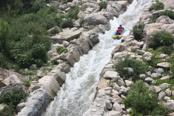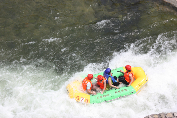 乘皮筏穿越8公里壯美的河道,蜿蜒回旋,九曲十八彎。河道落差188米,單個最高落差5米有零。河床時而寬闊,時而狹窄。流泉飛瀑隨處可見,潭連湖,湖連潭,一串一串。灘連著灣,灣連著潭,讓人倍感“船到灘前疑無路,灘過一灣又一潭,又一灣。”