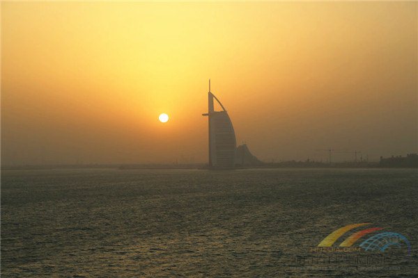 金色晨光中的七星帆船酒店