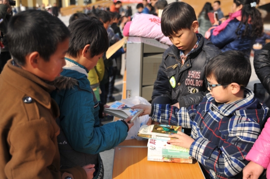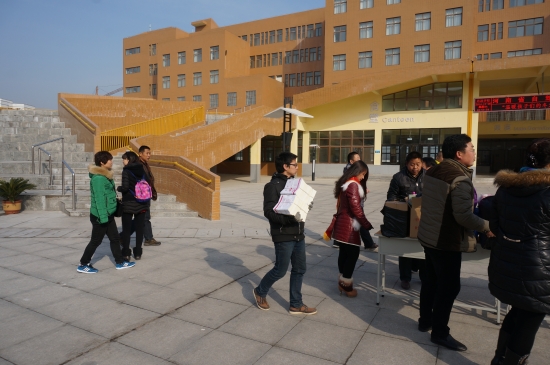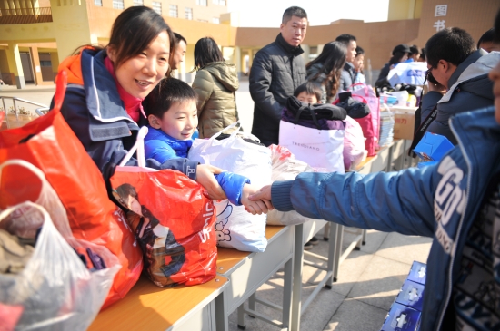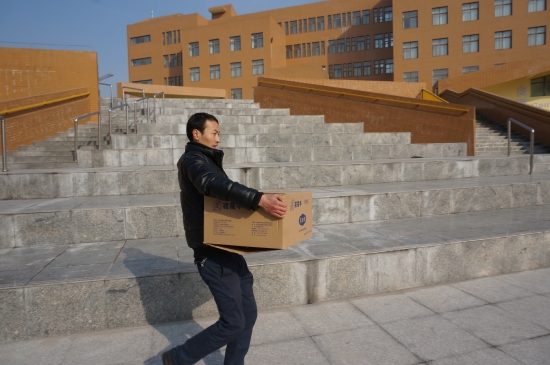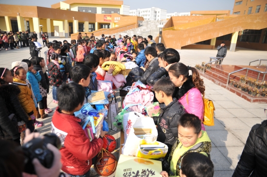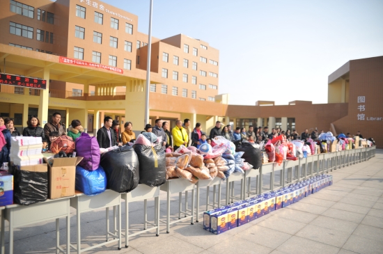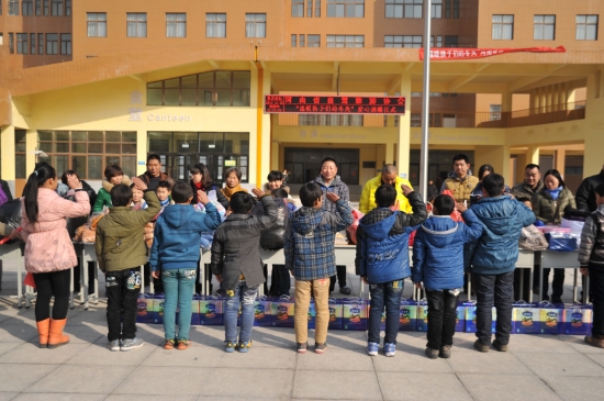 捐助活動正式開始,學(xué)生們分批領(lǐng)取各自所需。