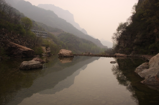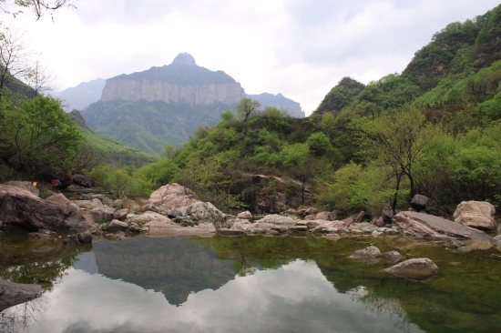 這里山高,和關(guān)山同屬太行山古老的斷層高崖和典型的峽谷地貌,峰巒的最高處須高仰了頭才能看到。溝底和谷邊巖縫里都是蔥蘢的樹木,還有各類搖曳生姿的植物掩映,水更顯幽了!八里溝的石靜,水清,草美,實(shí)在太誘人了~