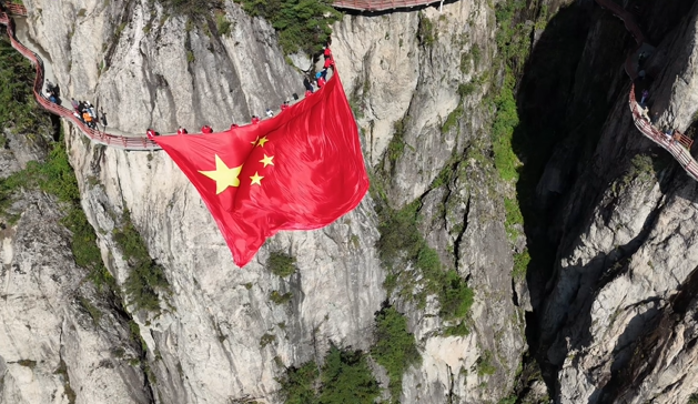 9月30日,在國慶來臨之際,河南老君山風景區上演感人一幕:10名護旗手于山谷之中,展開巨幅國旗,面向蒼茫群山莊嚴宣誓。他們以鏗鏘之聲,發出屬于這個時代的最強音。