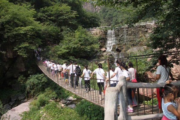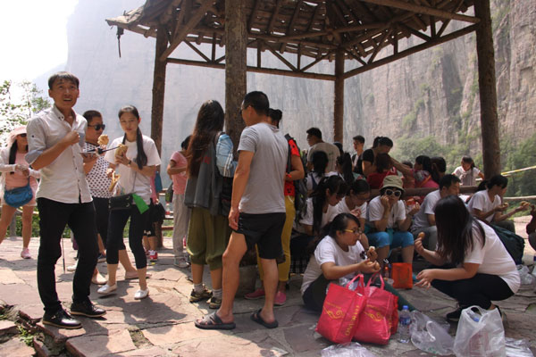 進(jìn)入景區(qū)之后,乘坐觀光車到達(dá)停車場(chǎng),在導(dǎo)游的帶領(lǐng)下,車友們紛紛開始了登山之旅。