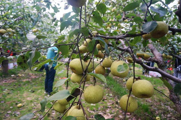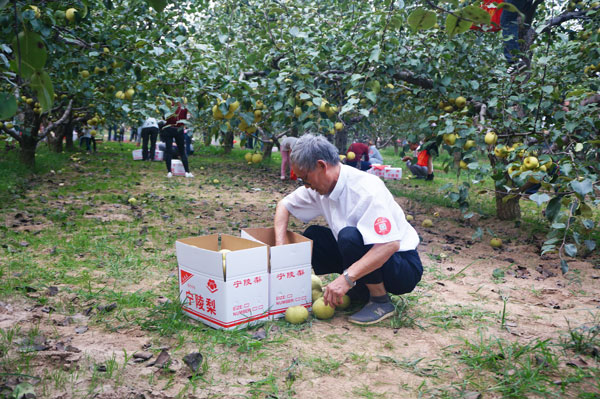 離開張弓酒廠,車隊前往萬頃生態(tài)梨園采摘酥梨