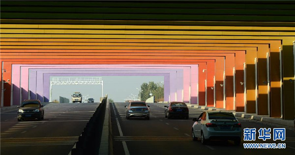 今年6月正式建成通車的鄭開(鄭州至開封)大道與S223省道交叉口北側(cè)的一處“彩虹隧道”吸引了市民的關(guān)注。該隧道南北兩端的引坡共安裝了80余根彩色U形箱梁,箱梁分為12種不同色彩。據(jù)介紹,駕車通過隧道時(shí),會(huì)形成“視覺漸變”的效果,在一定程度上可以緩解駕乘人員的視覺疲勞。