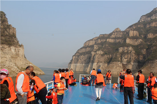 10月17日清晨每位車友都準(zhǔn)時到達(dá)鄭州北服務(wù)區(qū),一日游的車隊(duì)按原計(jì)劃七點(diǎn)半準(zhǔn)時出發(fā),沿連霍高速轉(zhuǎn)二廣高速前往黃河三峽,經(jīng)過三小時的車程,10:30準(zhǔn)時到達(dá)黃河三峽氣派的售票大門口。辦理好票務(wù)之后,大家迫不及待的到1號碼頭排隊(duì)乘船游覽萬里黃河第一峽——黃河三峽,欣賞獨(dú)特的黃河風(fēng)光,享受水繞山山繞水、船在山頂行的美妙感覺以及大自然的樂趣。自由午餐后,大家乘坐桃花島空中纜車,登桃花島,臨天下鼎氣龍穴,登桃山頂畫廊,觀高峽平湖、大河盆景。