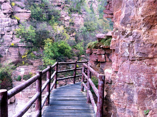 黃河丹峽景區(qū)以黃河丹峽、神仙峽、韶山峽等"一河三峽”構(gòu)成,融黃河風(fēng)情、歷史文化與丹霞地貌、峽谷奇觀為一體。黃河丹峽點(diǎn)綴在九曲彎彎的黃河之中,傳承著古代華夏文明的仰韶文化,流傳著大禹治水斧劈三門的神奇?zhèn)髡f(shuō)。 谷內(nèi)怪石林立、峭壁千仞,古樹(shù)參天、飛瀑湍急,匯集了奇山、怪石、險(xiǎn)谷、清溪、深潭、密林等奇特自然景觀,堪稱世界峽谷奇觀、中國(guó)最美的峽谷。整條峽谷由紅色石英砂巖構(gòu)成,從谷底到崖壁全成紅褐色。12億年前這里曾是一片汪洋大海,丹峽正是滄海桑田的有力見(jiàn)證,峽谷還能看到當(dāng)年海洋波浪沖刷留下的石印。