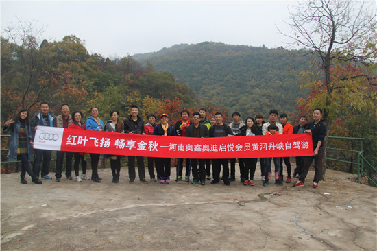 2015年10月31日—11月1日,由河南省自駕旅游協(xié)會(huì)和河南奧鑫奧迪4S店聯(lián)合主辦的“紅葉飛揚(yáng),暢享金秋——黃河丹峽自駕游”活動(dòng)圓滿結(jié)束。11輛車、36位車友一起在最美的秋季欣賞了黃河丹峽最紅的景色,一起去尋覓到了最神奇的紅色世界……